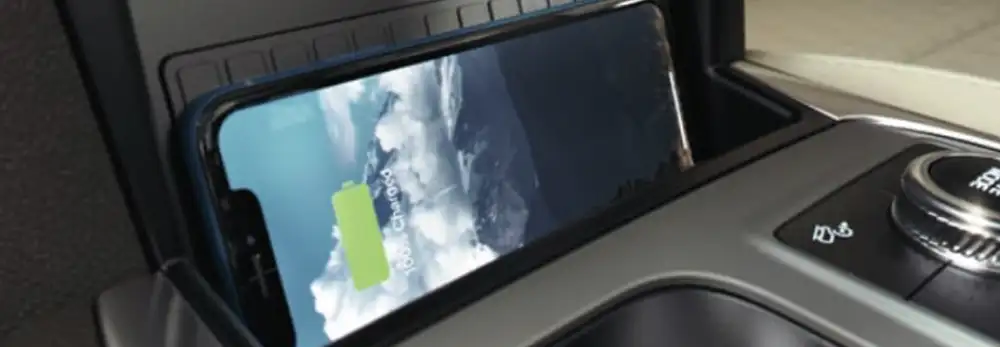 Ford Explorer với một khay sạc không dây được bố trí thuận tiện phía trước bệ tì tay của khu vực điều khiển trung tâm, cho phép điện thoại của bạn sạc liên tục ngay trong tầm với ngay khi trong lúc đang lái xe.
